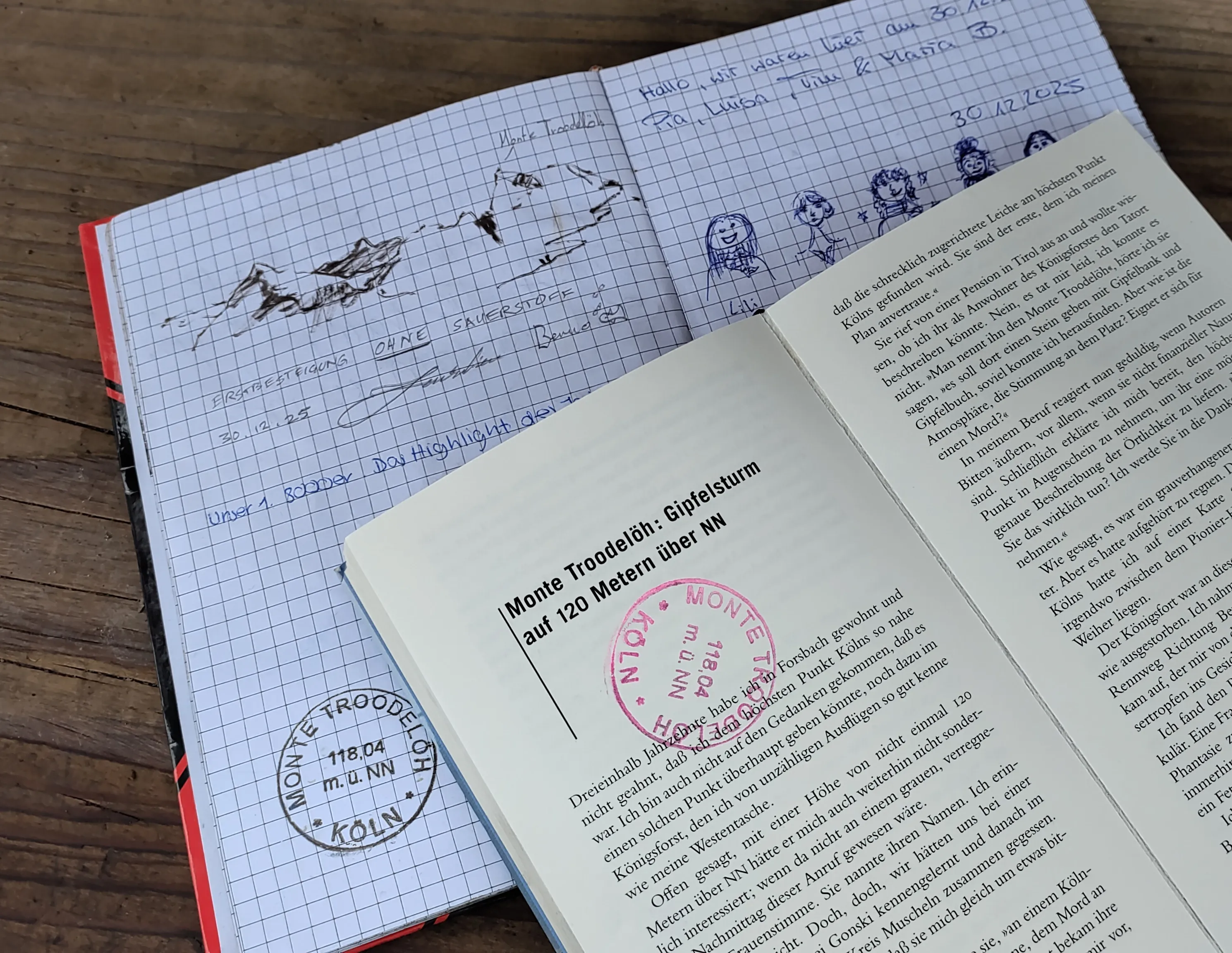 Ich bin vorbereitet, habe mein eigenes, schon oben erwähntes Stempelkissen dabei und lasse mir dieses offizielle Insigne des Deutschen Alpenvereins diesmal nicht entgehen! So bekommt der Stempel einen Ehrenplatz im entsprechenden Kapitel von Reinhold Neven Du Monts Gebrauchsanweisung für Köln.