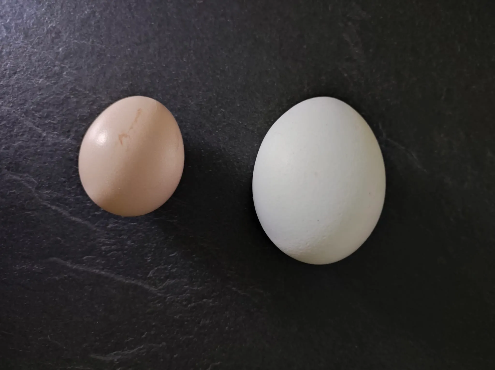 Links ist das von unseren Seidis gelegte Ei, das mit 26 Gramm unglaublich süß und putzig ist, verglichen mit dem Bio-Ei von ALDI rechts. Das Ei im Streu zu finden hat dennoch unseren Puls höher schießen lassen. Wir sind … stolz?! Ich muss noch etwas in meinen Emotionen kramen, ob das das richtige Wort ist. Auf jeden Fall können wir festhalten, dass es den Hühnern so gut geht, dass sie Eier legen. Hooray!